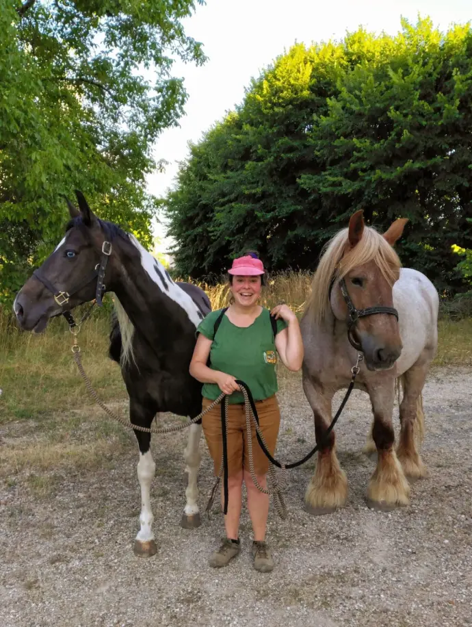 Deux Juments viennent d’arriver au Domaine, en quête de nouveaux pâturages : Poupée, la paint-horse noire et blanche d'Anaïs qui a des yeux vairons bleu et marron, et Alizée, la puissante ardennaise de trait de Maël. Souhaitons qu’elles se plaisent chez nous !