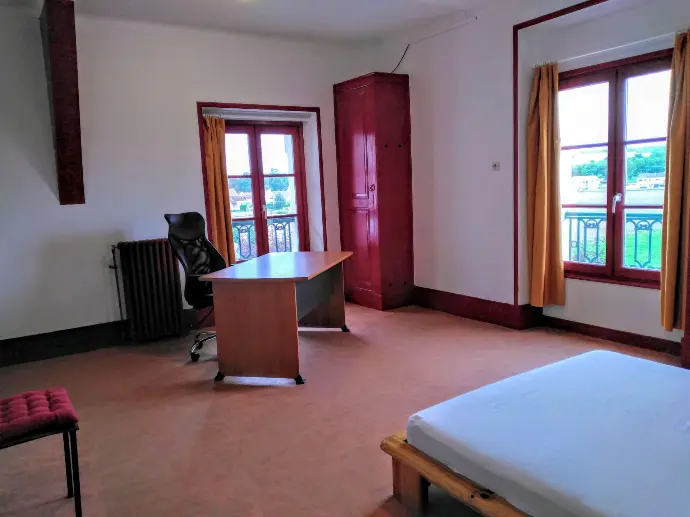 Au sein d’un domaine paisible et verdoyant, cette chambre spacieuse de 23 m² offre un cadre de vie privilégié pour les étudiants à la recherche de tranquillité, de confort et de praticité. Extrêmement lumineuse, elle offre une belle vue dégagée sur la façade du château et sur les champs — un environnement ressourçant, propice à la concentration comme à la détente.
